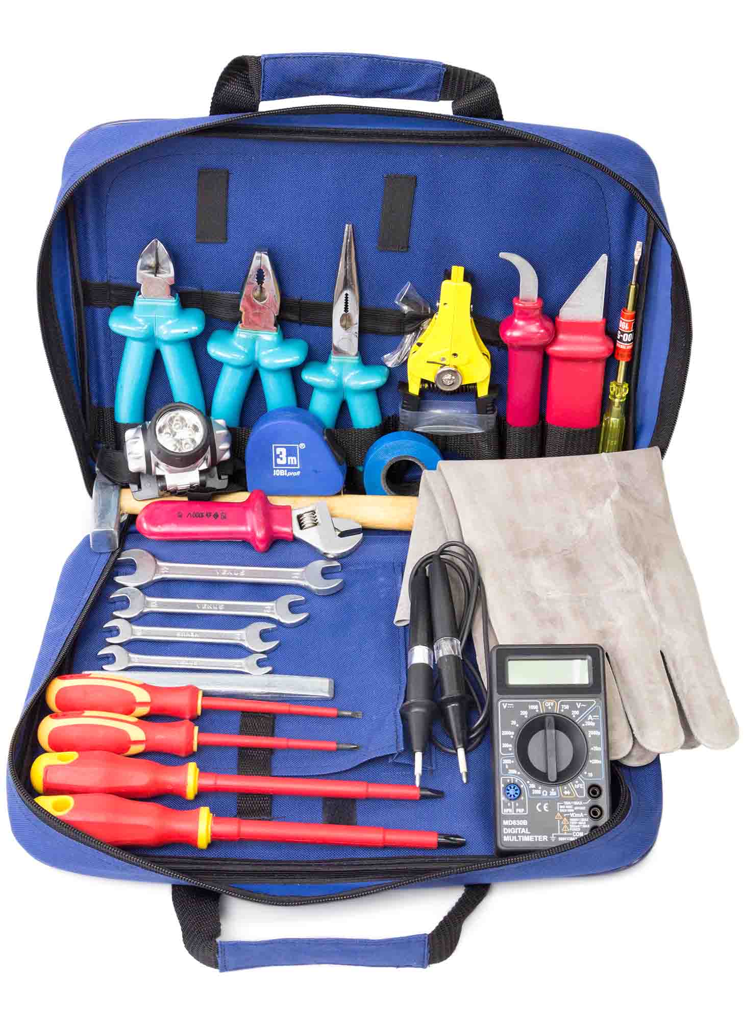 Набор инструментов электрика универсальный НЭУ® (набор электромонтажника арефино) предназначен для производства электромонтажных работ в электрических сетях и установках, работающих под напряжением до 1000В. Считается первым профессиональным набором инструментов, позволяющим производить широкий спектр работ.