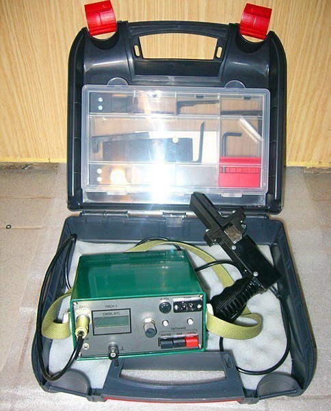 Прибор ПКСН-1 состоит из контрольного щупа, блока измерения и соединительных кабелей. Контрольный щуп выполнен на основе тензорезисторного датчика. Блок измерения служит для обработки сигнала, поступающего с контрольного щупа, и цифровой индикации значения силы нормального контактного нажатия. Контроль и регулировку силы нажатия с помощью прибора может выполнять один человек.
