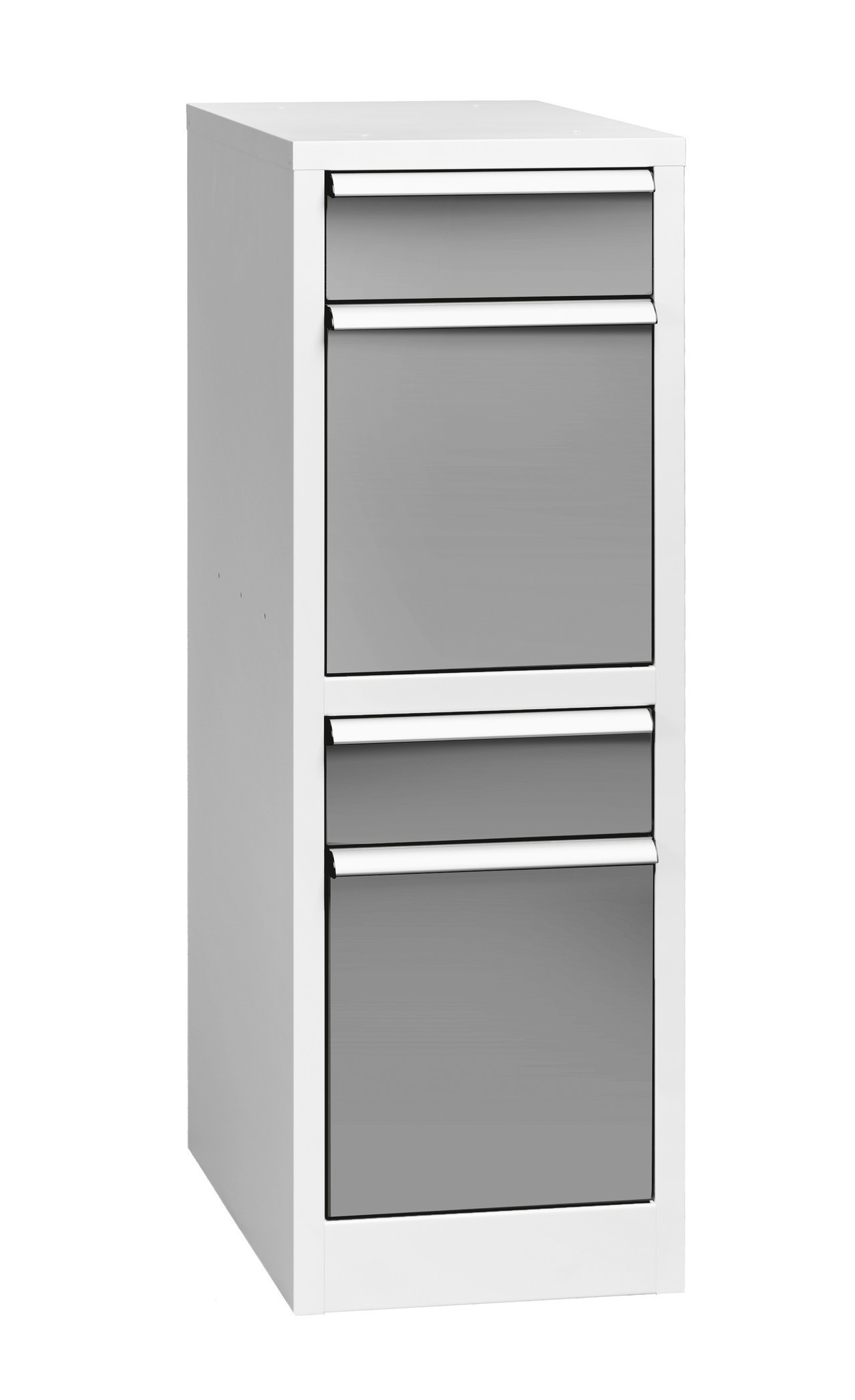 Вместительная металлическая приставная тумба предназначена для размещения документов, папок и любых дополнительных материалов. В тумбе 2 стандартных выдвигающихся ящика и 2 вместительные полки, все выдвигаются с помощью направляющих на 650 мм. Каждая из полок оборудована перфорированными боковыми экранами, которые могут быть установлены с любой стороны. Максимальная распределенная нагрузка на полку 30 кг.