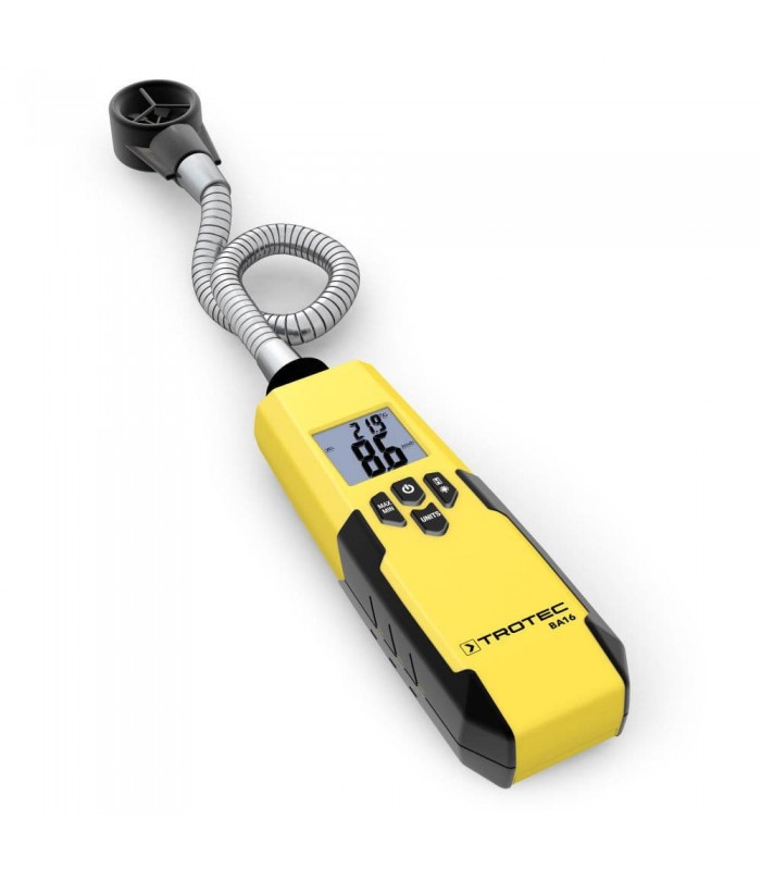 Измерение скорости ветра, воздуха или газов, температуры воздуха и объемного расхода воздуха не представляет проблем при использовании этого анемометра с крыльчаткой. Устройство немедленно готово к использованию и отображает измеренные значения на легко читаемом большом дисплее с подсветкой. При необходимости можно записать текущее измеренное значение и отобразить минимальное и максимальное значения. Гибкий зонд Trotec BA16 длиной 40 см позволяет проводить измерения даже в труднодоступных местах или в удаленных отверстиях подачи и выпуска воздуха, что очень важно для инженеров сантехники, отопления и вентиляции, при измерении на выпускных решетках, каналах и вихревых диффузорах. Полупрофессиональный Trotec BA16 также отлично подходит для спортсменов-любителей для определения силы ветра или для контроля эффективности бытовой техники, такой как системы кондиционирования воздуха и охлаждающие вентиляторы в секторах обработки данных.